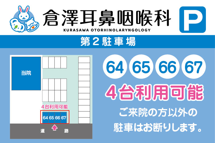 クリニック前の駐車場が満車の場合、クリニック向かって右側の駐車場64~67をご利用ください。